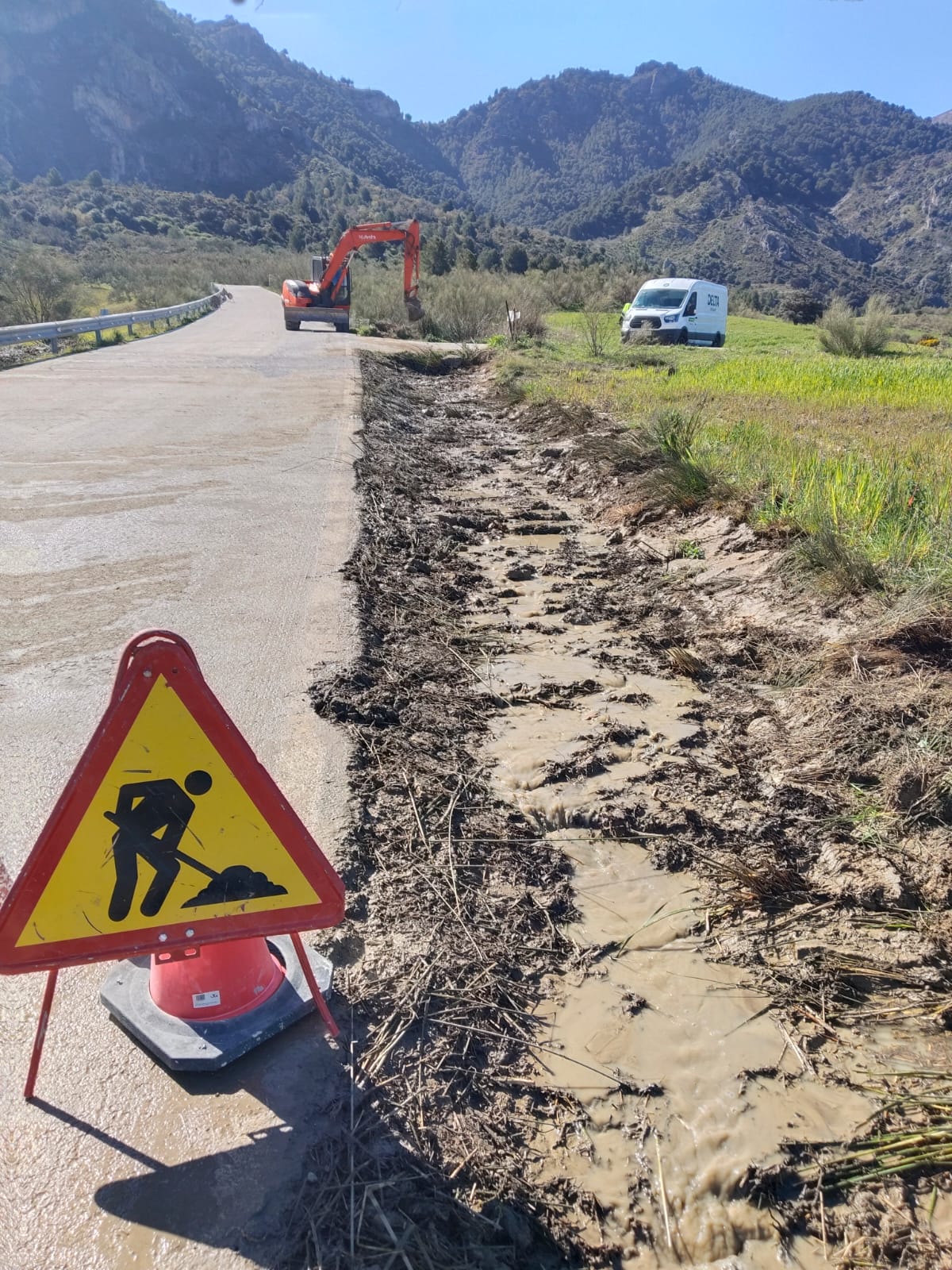 Actuación de emergencia en la carretera MA 5401 de la zona del Guadalhorce por el deterioro debido a las lluvias ocasionadas durante el temporal del pasado mes de febrero.